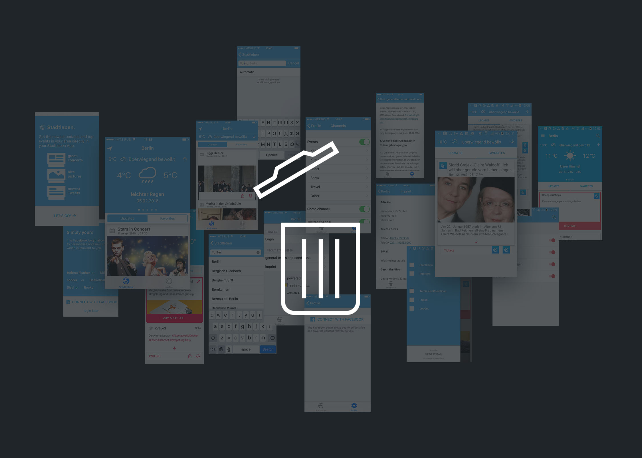 За несколько недель до релиза уже разработанного приложения руководство проекта решило, что необходимо полностью переделать интерфейс. Это не первый наш проект с компанией Meinestadt, и они обратились за помощью к нам.