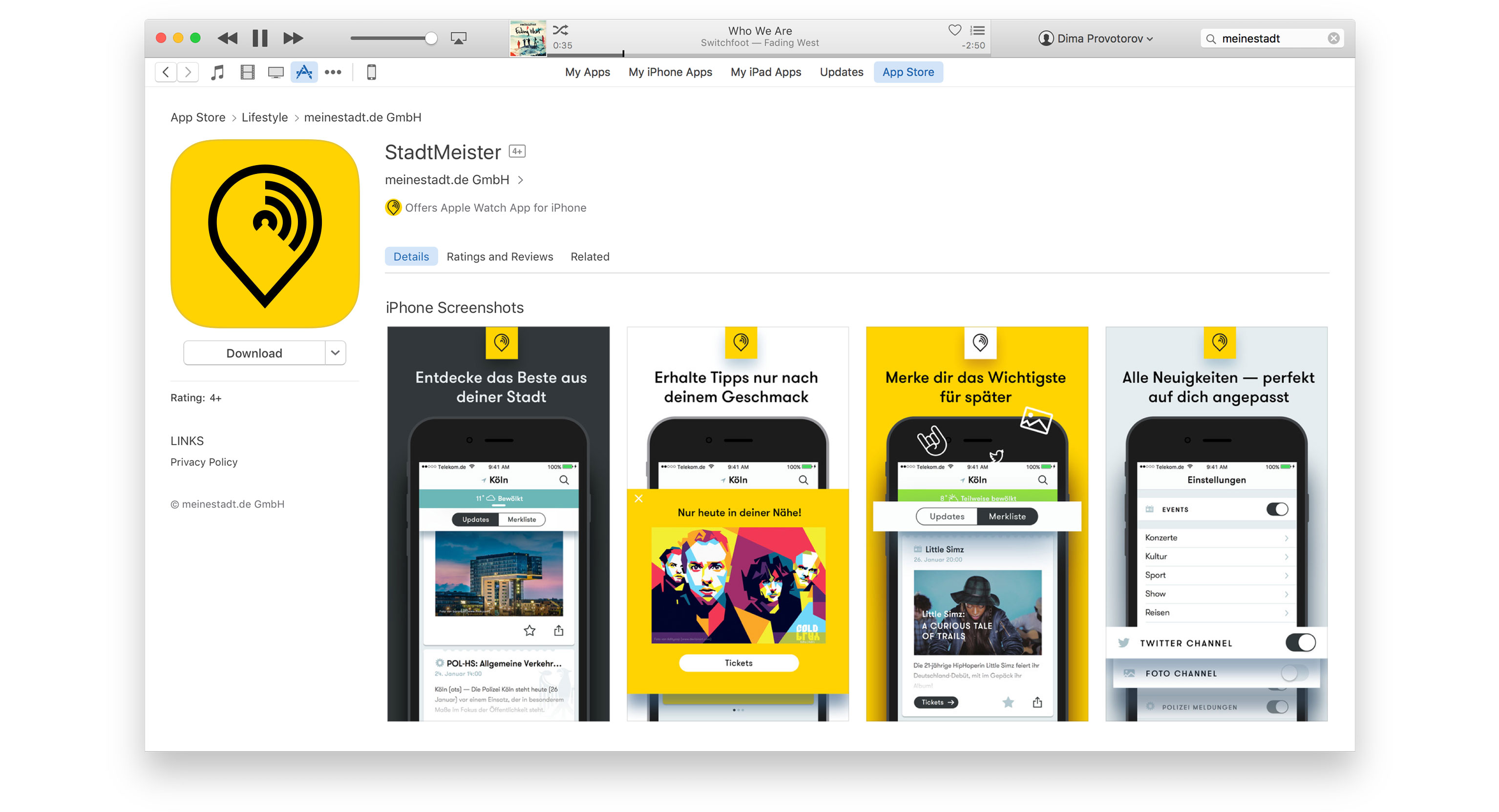 Stadtmeister — один из проектов медиакомпании Meinestadt. Он спроектирован подразделением, которое отвечает за тестирование новых идей полезных продуктов для многомиллионной аудитории компании.